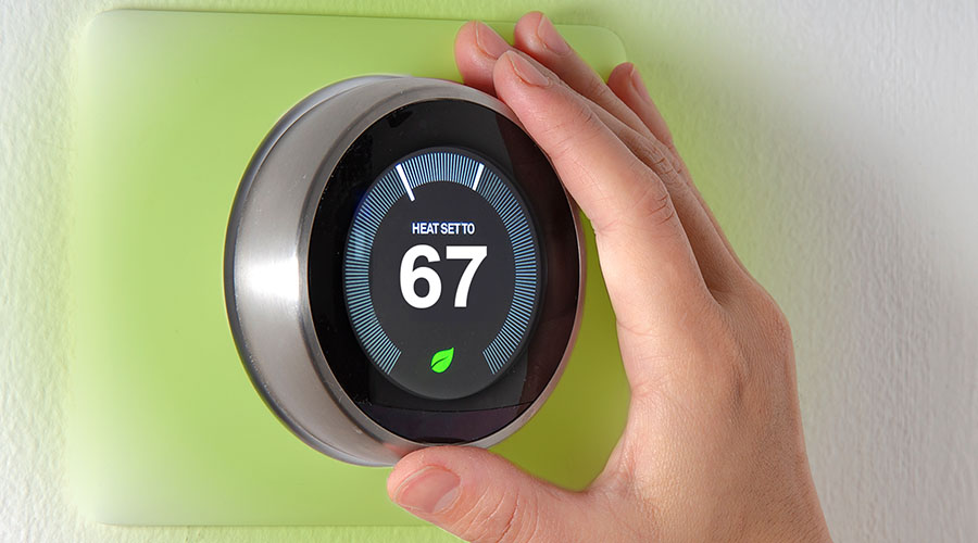 Smart thermostats are practical and versatile. Build a schedule or adjust the temperature from anywhere using your smartphone. For example, turn the heat back up while returning from vacation or check to confirm family members at home are comfortable.